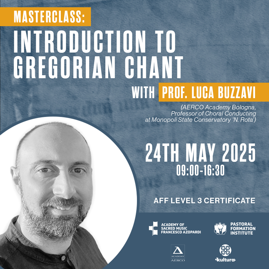 Masterclass: Introduction to Gregorian Chant Lecturer: Prof. Luca Buzzavi + Add to Google Calendar + iCal / Outlook export Date 24 May 2025 Expired! Time 8:00 AM - 5:00 PM Location Archbishop's Seminary 90 Triq Tal-Virtú, Rabat Share this event